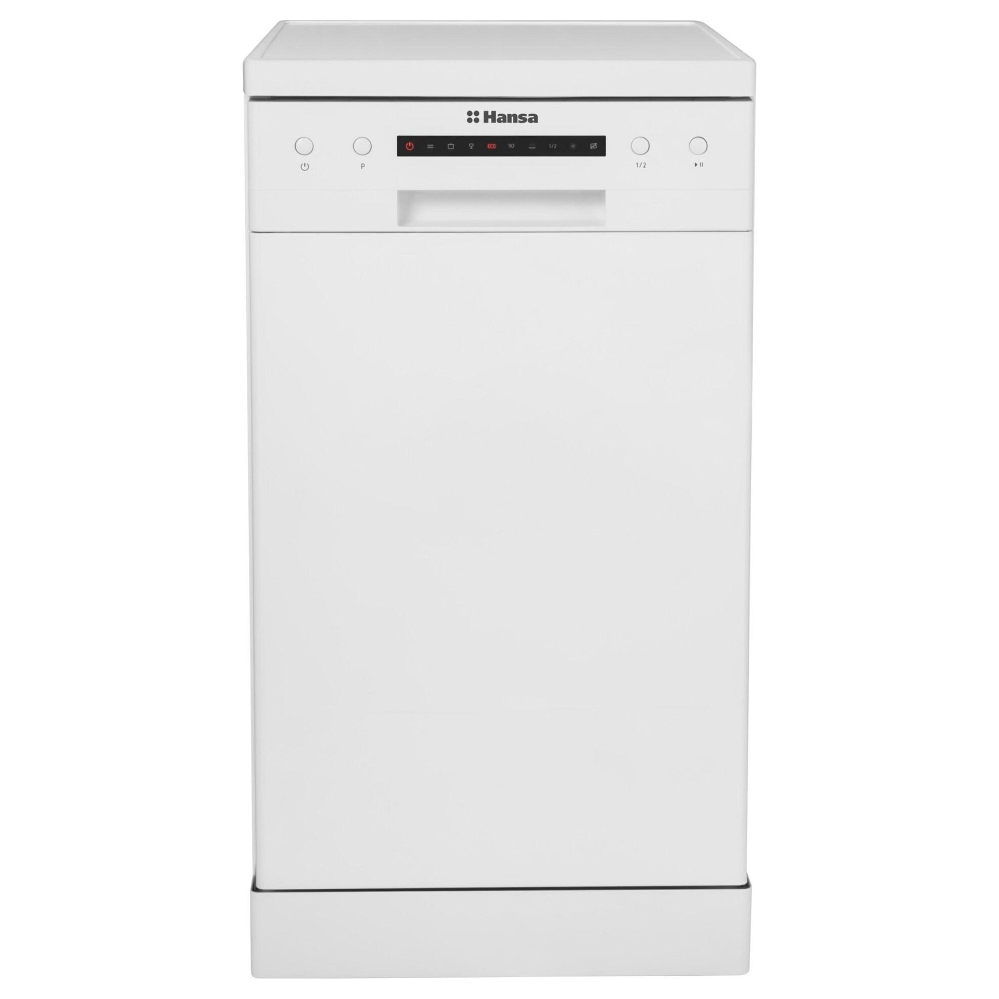 Узкая посудомоечная машина Hansa ZWM416WEH, 45 см, 6 программ, 9 комплектов посуды, 3 корзины, половинная загрузка, система Aquastop, белая
