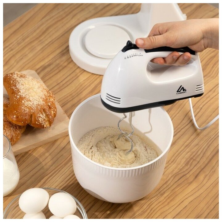 Купить Миксер LuazON LMR-02, ручной, 180 Вт, 7 скоростей, 4 насадки, бело-чёрный 2691402