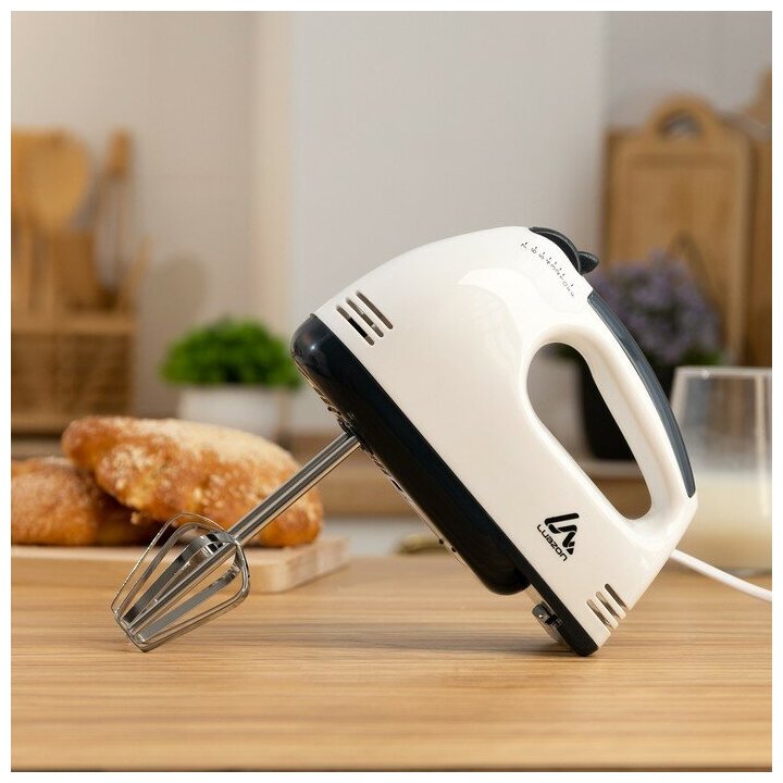 Миксер Luazon Home LMR-02, ручной, 180 Вт, 7 скоростей, 4 насадки, бело-черный