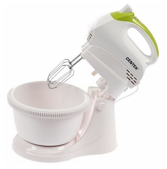 Миксер с чашей Centek CT-1119 (бел/зел) 350Вт, 2.5л, 5 скоростей+турбо, взбивание/замешивание