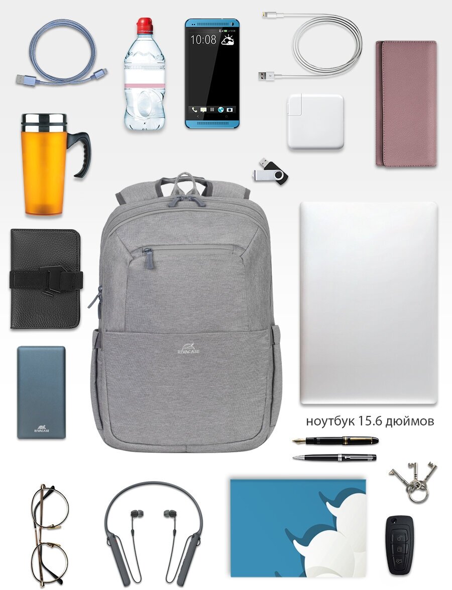 Рюкзак Riva 7760 для ноутбука 15.6" серый полиэстер