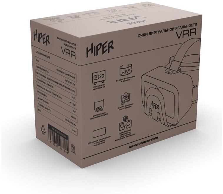 Очки виртуальной реальности для смартфона 4.7-6.2, HIPER VRR, 1659013