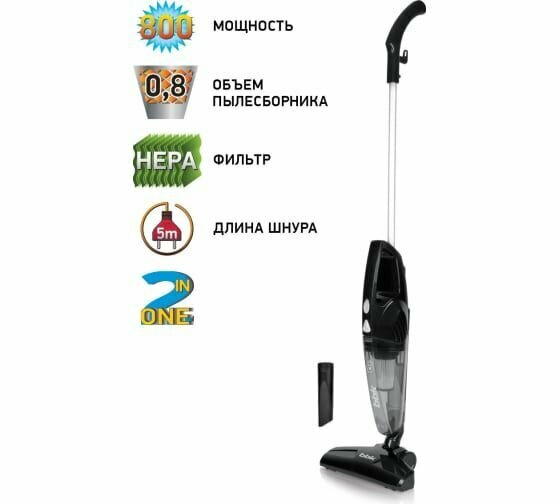 Вертикальный пылесос BBK BV2511 черный, объем пылесборника 0,8 л, мощность всасывания 110 Вт, нера фильтр, 2 насадки в комплекте
