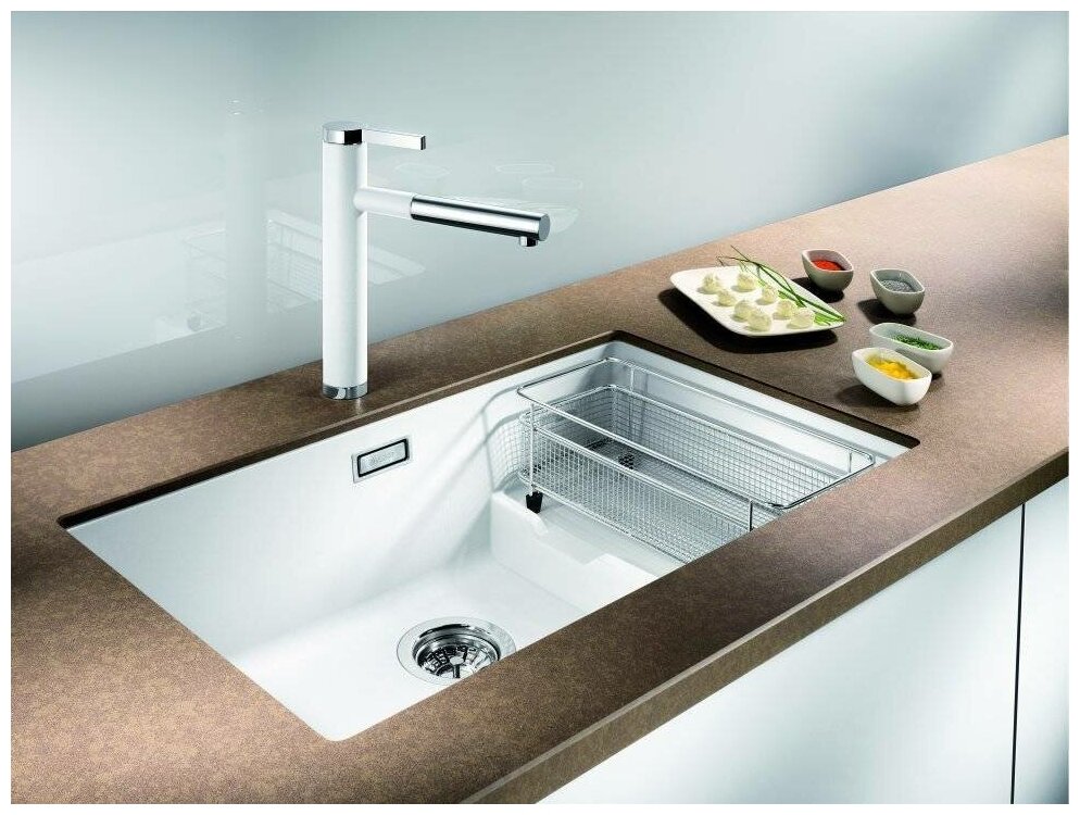 Врезная кухонная мойка 46 см, Blanco Subline 700-U Level Silgranit PuraDur с InFino, белый