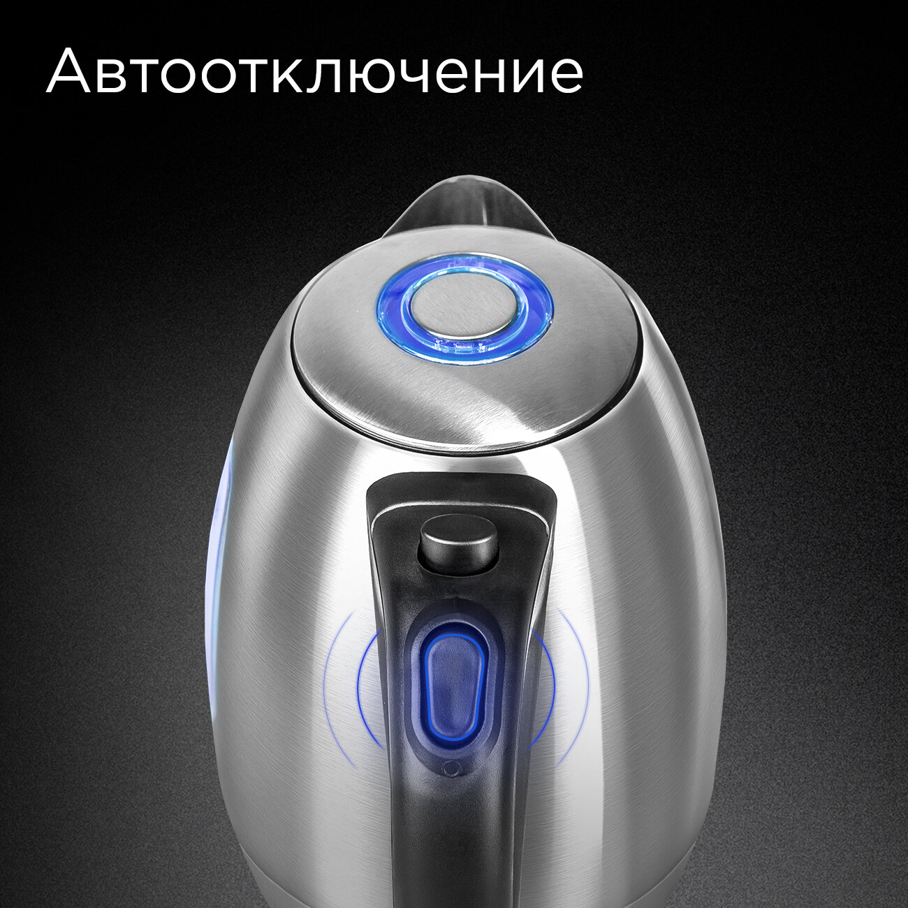 Чайник электрический RK-M183, металл, 1.7 л, 2200 Вт, подсветка, серебристый