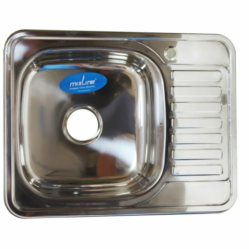 Врезная кухонная мойка Mixline из нержавеющей стали прямоугольная 50х65 выпуск 3 1/2 глубина 16 см, крыло правое