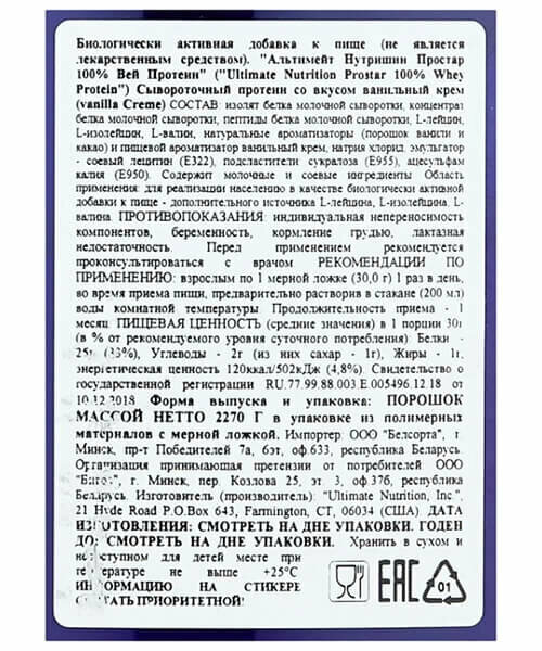 СохранитьUltimate Nutrition Prostar Whey Protein (2,39 кг) Ваниль интересное: