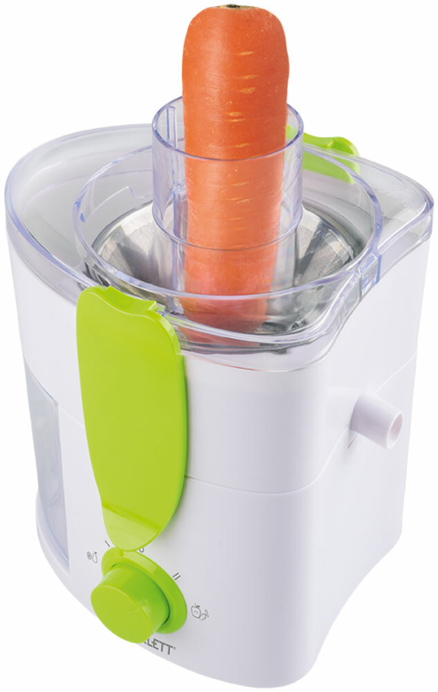 | Отзыв: | Предельно простая в устройстве и работе. Например,если овощ твердый, то скорость снижаем, а когда мягкий спелый плод, то поддаем газку. Фильтр-сетка из нержавейки, промываем под краном. Легко разбирается и собирается. Жене ещё понравилось цветовое оформление, белый корпус с ярко-зелеными элементами). На ножках резинки, при работе стоит как вкопанная. |
