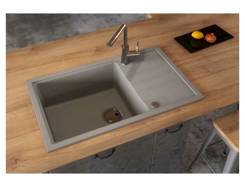 Раковина для кухни врезная каменная Alveus Granital Atrox 40 TERRA - G22 790 X 500 / кухонная мойка накладная из искусственного камня, гранит, бежевый