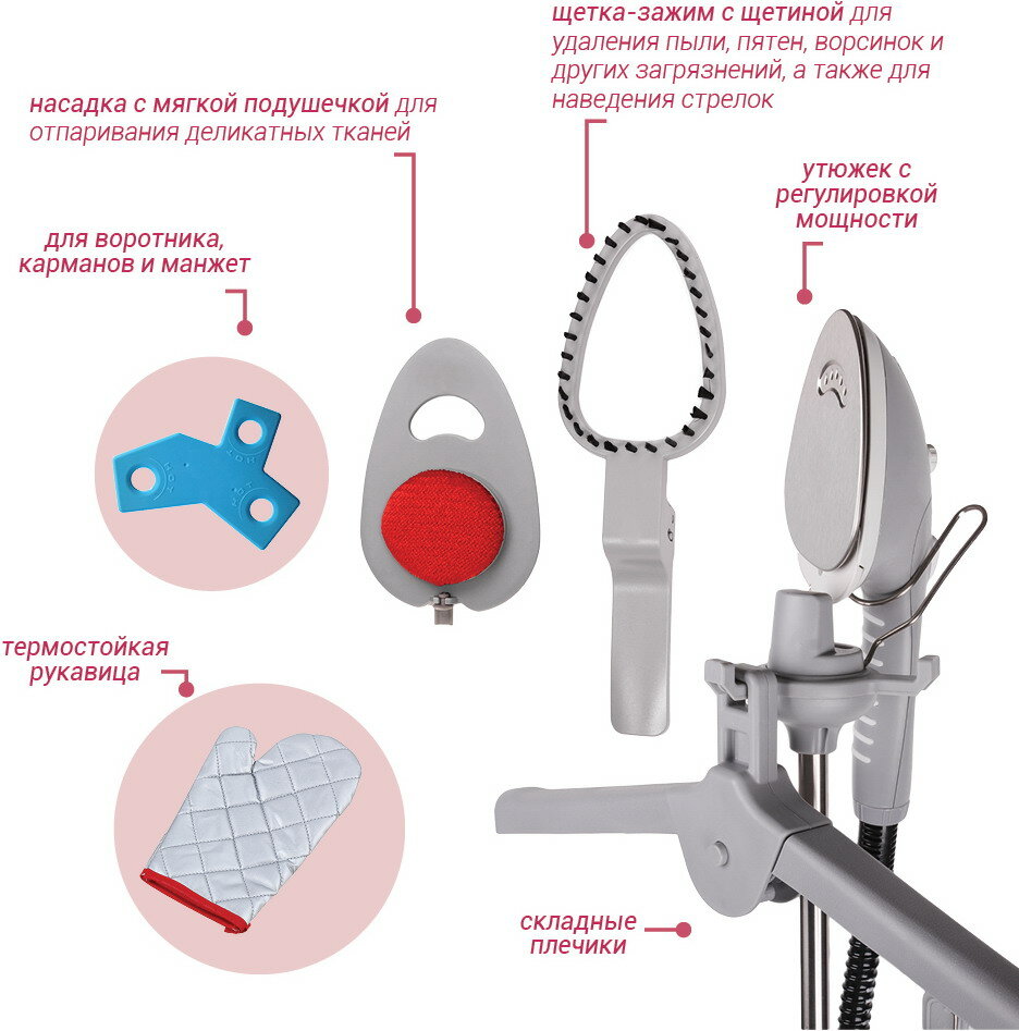 | Минусы: | Паровой утюжок и шум |
