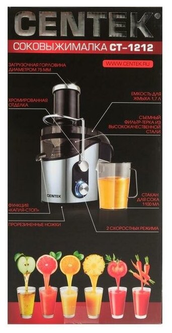 СохранитьСоковыжималка Centek CT-1212 (черный, сталь) интересное: