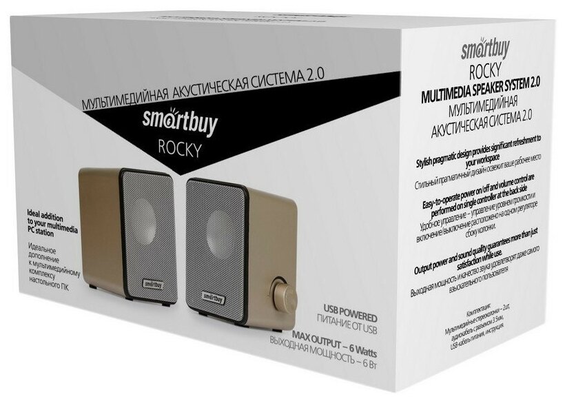 Колонки SMARTBUY Rocky, 2.0, золотистый/ серый [sba-3200]