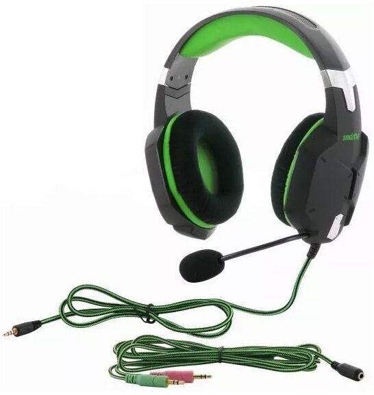 Гарнитура полноразмерная Игровая SmartBuy RUSH VIPER, мобильная, дин.50мм. велюр амб.+ПК черн/зел (