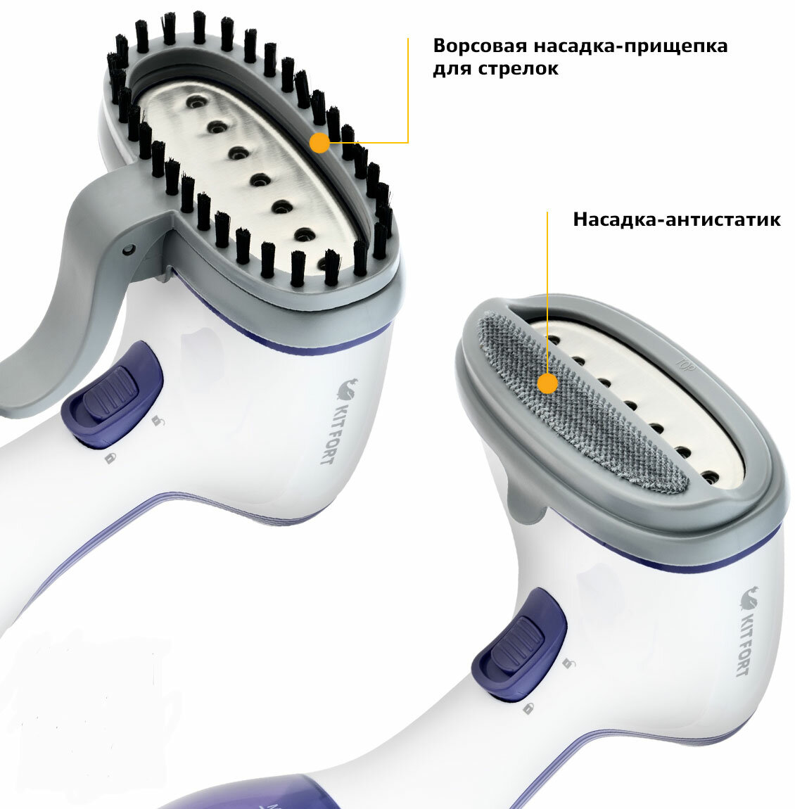 Отпариватель ручной KITFORT KT-916-2, комплект 5 шт., 1000 Вт, пар 20 г/мин, резервуар 0.26 л, 1 режим, фиолетовый