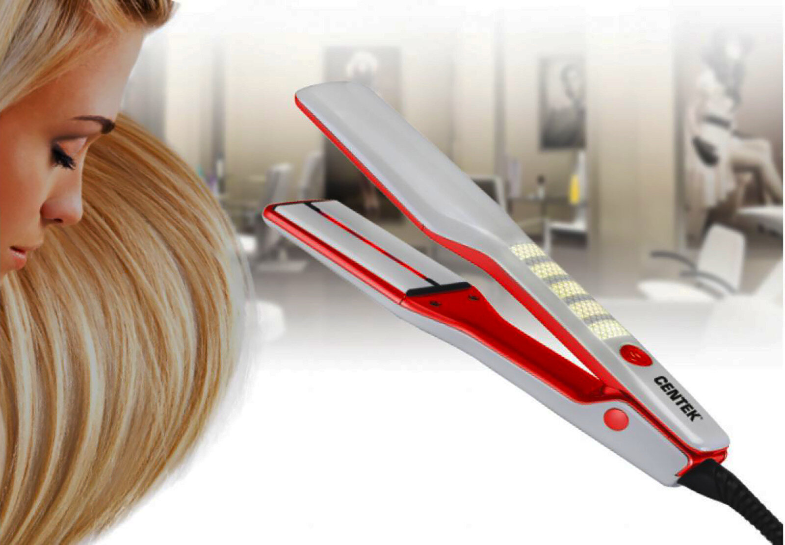 Centek Выпрямитель для волос CT-2016, 45 Вт, бело-красный