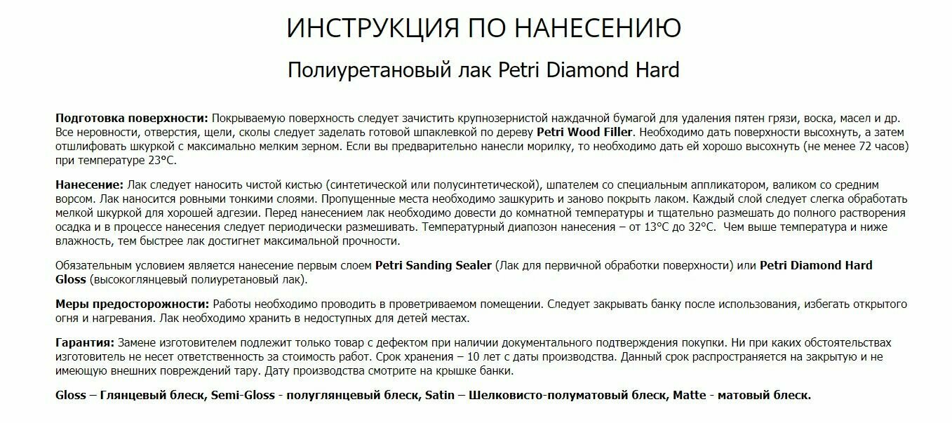 Petri Полиуретановый лак Diamond Hard глянцевый PC1711101 .