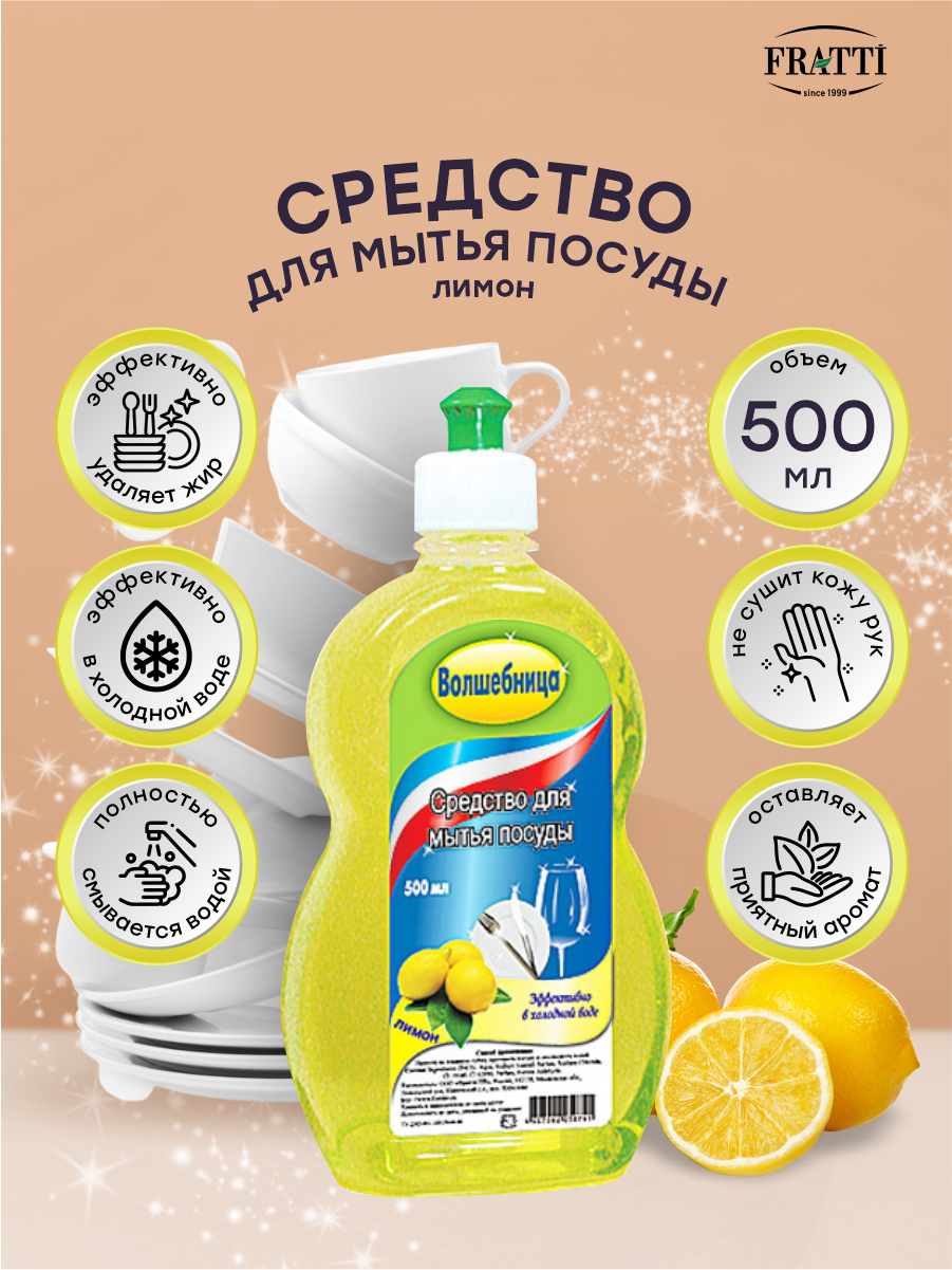 Средство для мытья посуды волшебница Лимон 500 мл. интересное: