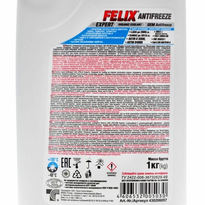 Антифриз Felix Expert G11 Готовый -40c Синий 1 Кг 430206057 Felix арт. 430206057