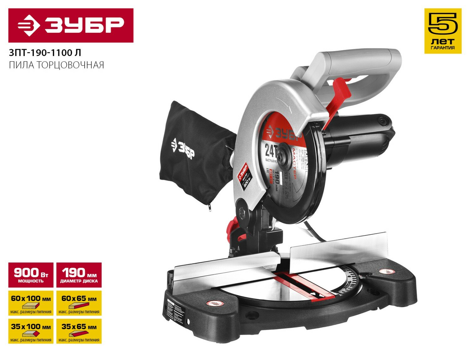 Пила торцовочная Зубр ЗПТ-190-1100 Л, серия «мастер»