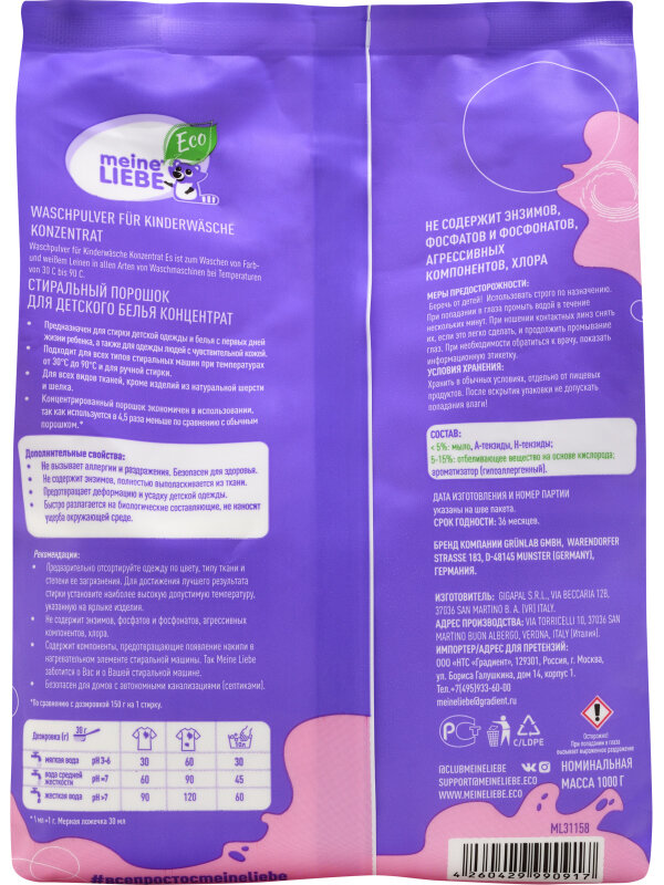 Стиральный порошок MEINE LIEBE для детского белья 1кг ML31158 интересное: