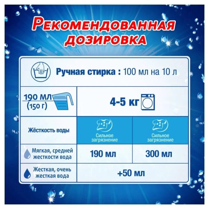 | Плюсы: | Хорошо отстирывает, экономичный расход, приятный запах после стирки |