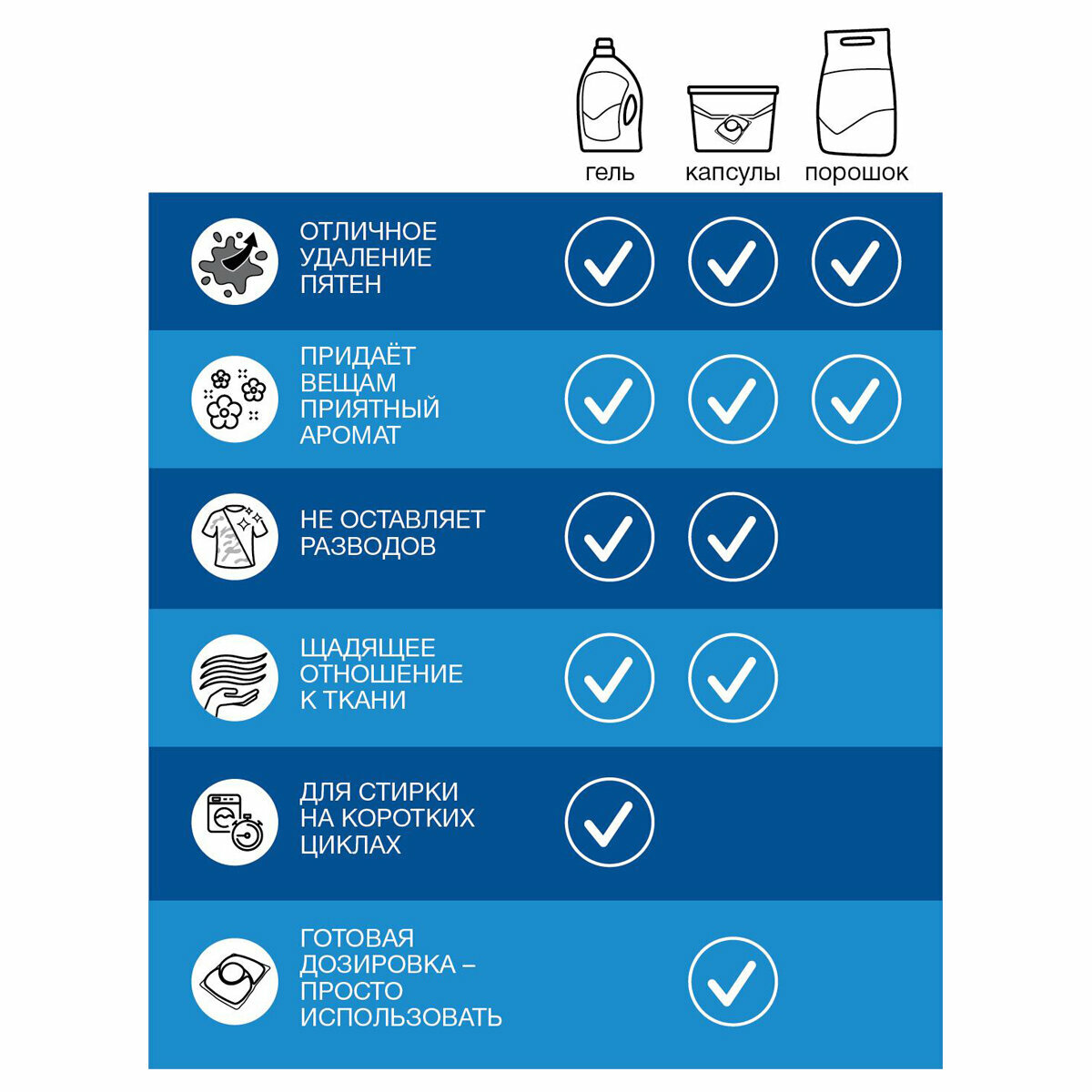 | Плюсы: | Хорошо отстирывает, экономичный расход, приятный запах после стирки |