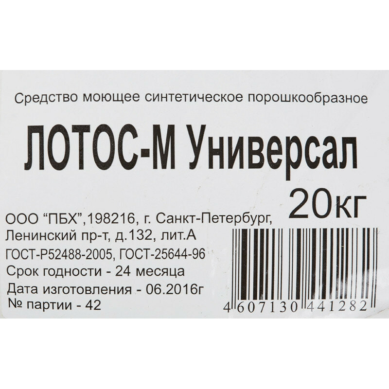 Порошок стиральный лотос-м универсал 20кг