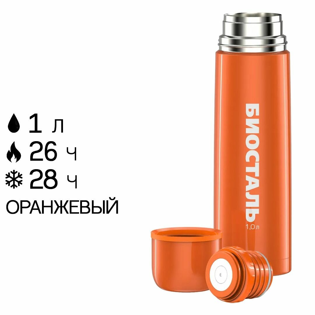 Термос с узкой горловиной Biostal NB-1000 С-O оранжевый, 1.0 л. (в уп. 12 шт) NB-1000 C-O