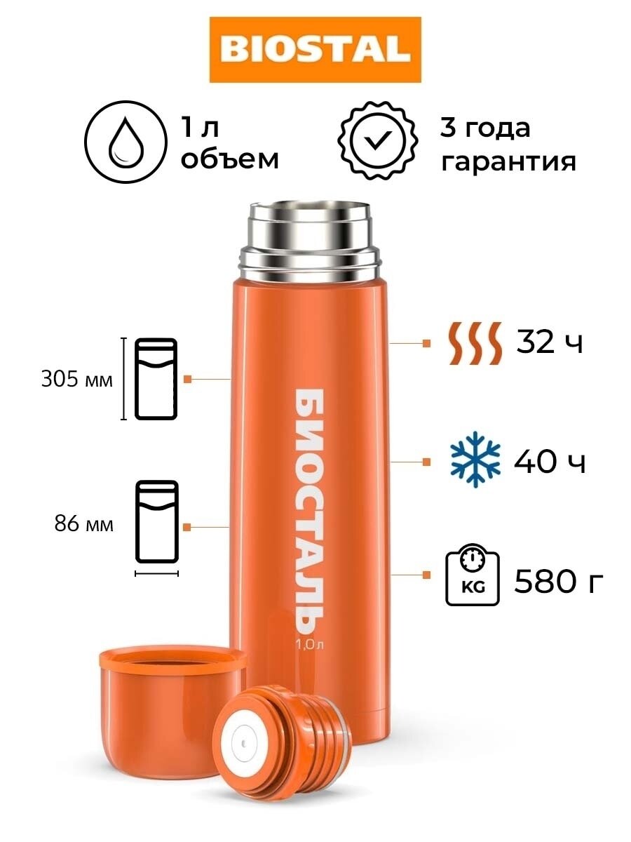 Biostal Термос для напитков BIOSTAL NB-1000C-O (1л, оранжевый)