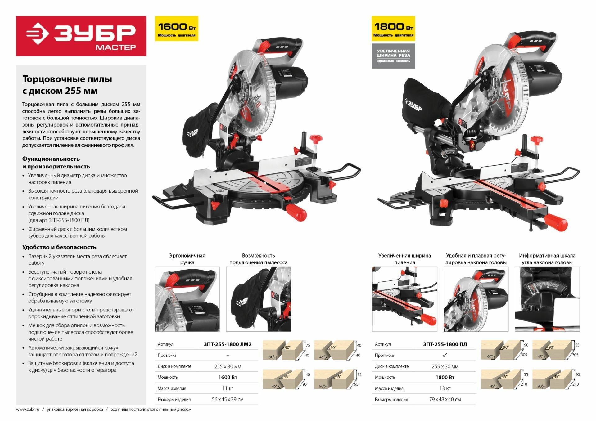 Пила торцовочная Зубр Мастер ЗПТ-255-1800 ПЛ