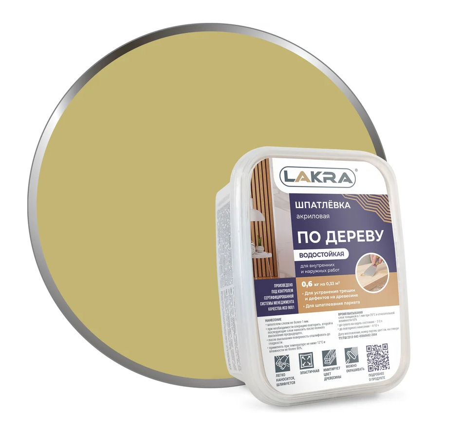 Шпатлевка по дереву Лакра акриловая, Береза, готова к применению, 1,5 кг