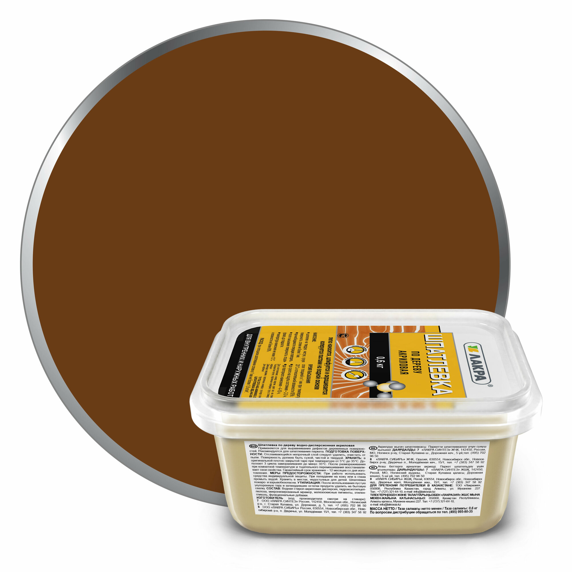 шпатлевка готовая лакра по дереву 0,6кг орех, арт.ШПорех0,6