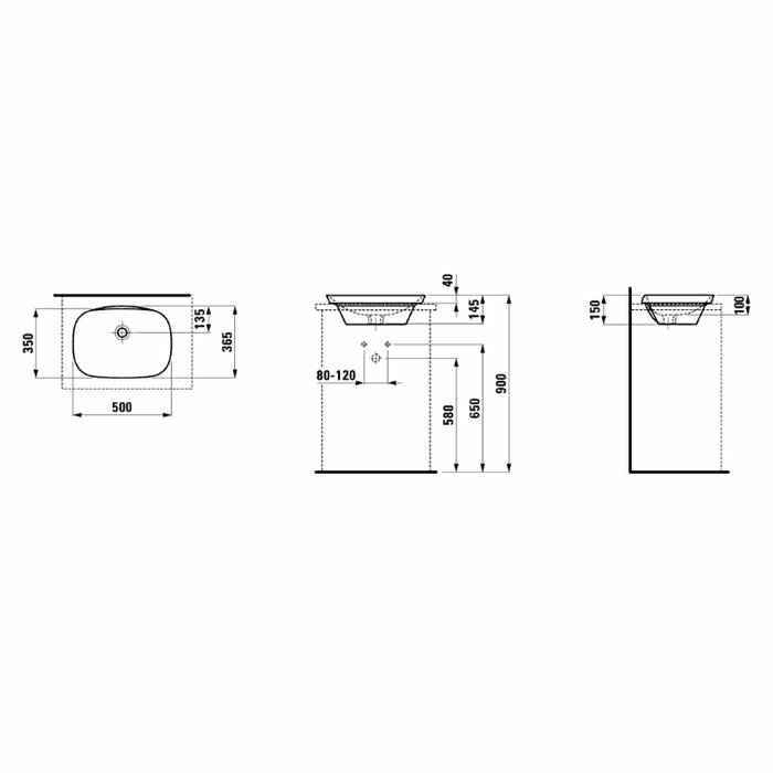 Laufen Laufen INO Раковина 500х365х40мм без отв. под смеситель, встраив. сверху, цвет: белый