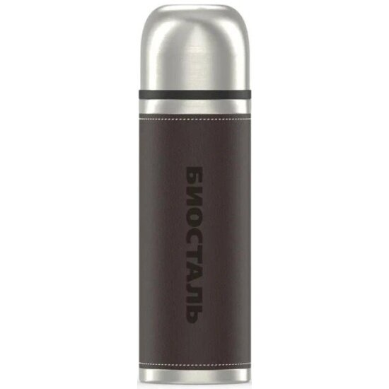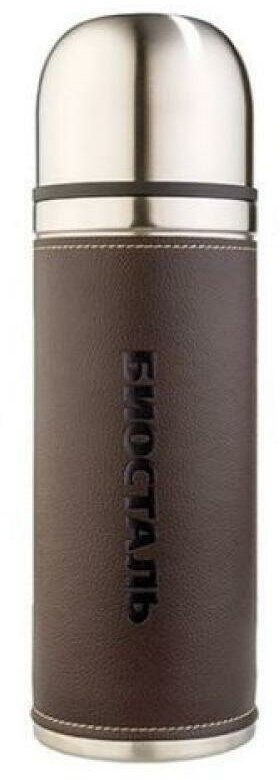 Термос Biostal Охота (0,75 литра) с кожаной вставкой, коричневый