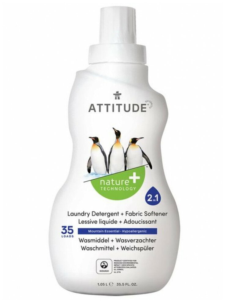 Attitude жидкость для стирки 2-в-1 Mountain Essential со смягчителем стирки Гипоаллергенная Экологическая 1,05 л