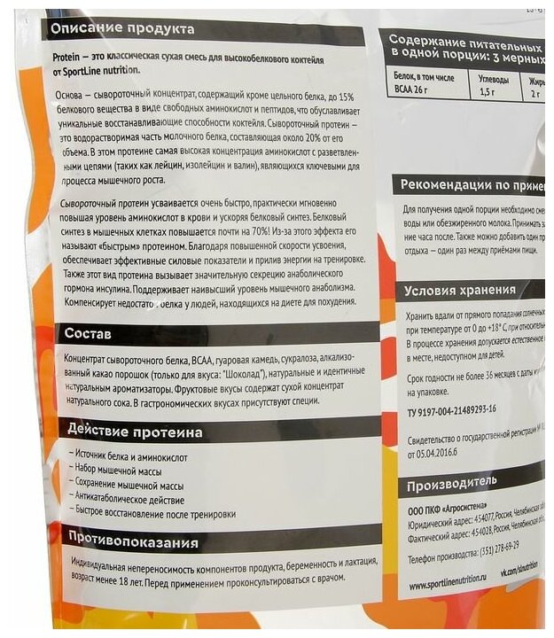 SportLine Nutrition Dynamic Whey Protein, шоколад, 1000 гр.