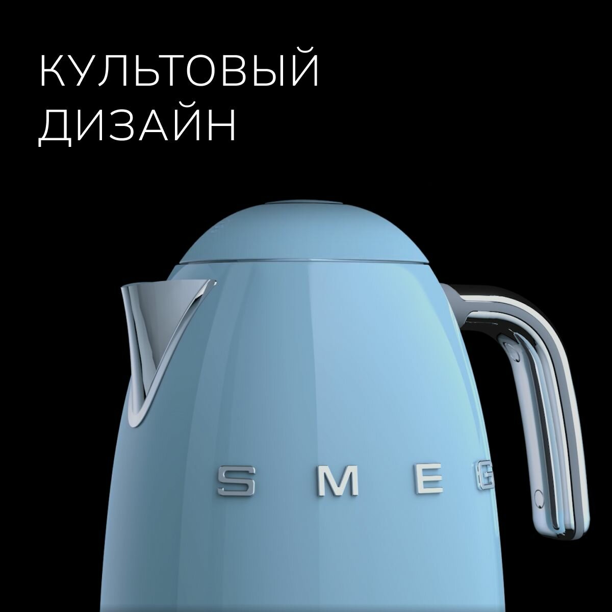Электрический чайник Smeg Стиль 50-х г., чайник электрический, 1.7 л, 2400 Вт, корпус из нержавеющей стали, черный KLF04BLEU