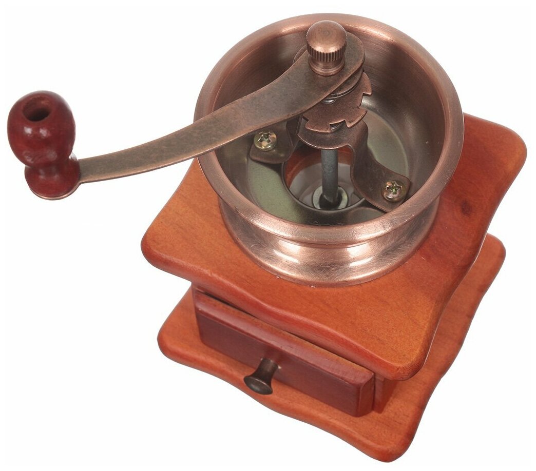 Кофемолка с деревянным основанием, металл, 10x10x17, 5 см