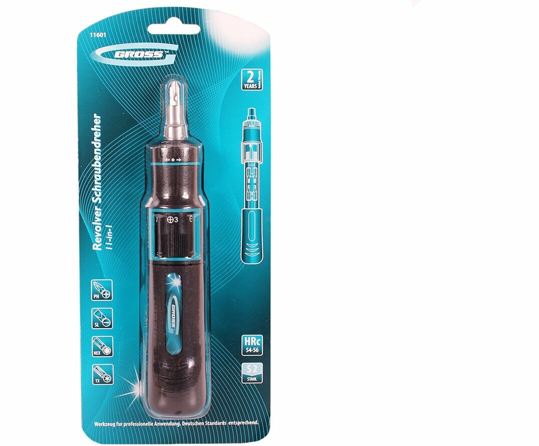 Отвертка реверсивная с револьверным механизмом Gross 11601, сталь S2, 11 шт Gross 9359108 .