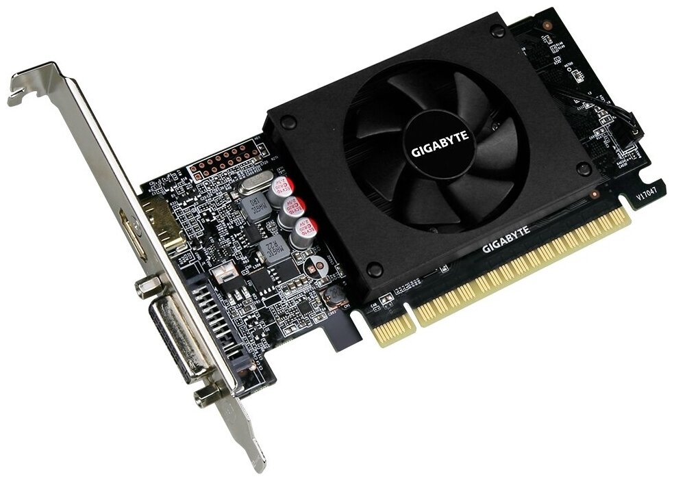 Видеокарта GIGABYTE GeForce GT 710 GV-N710D5-2GL (GV-N710D5-2GL) - PCI-E 2.0, 2 ГБ, GDDR5, 64 бит, HDMI, DVI, GPU 954 МГц