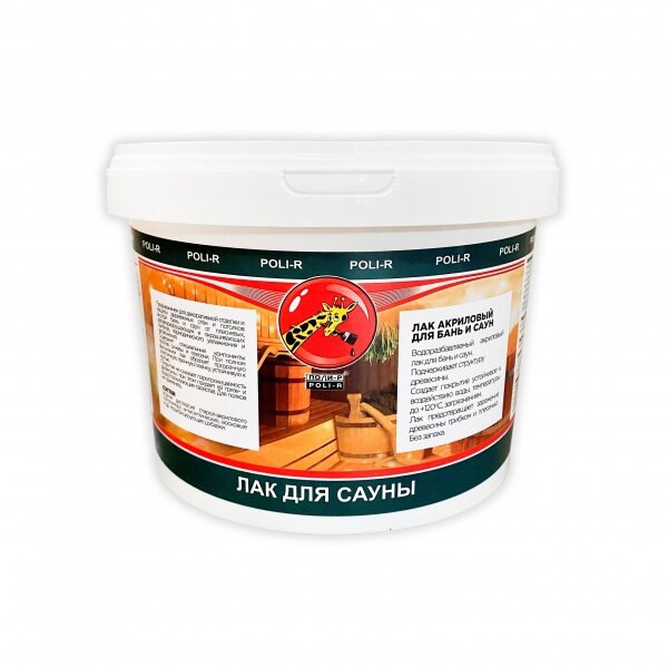 Лак Акриловый для Саун Poli-R 0.9кг Бесцветный, Полуматовый.