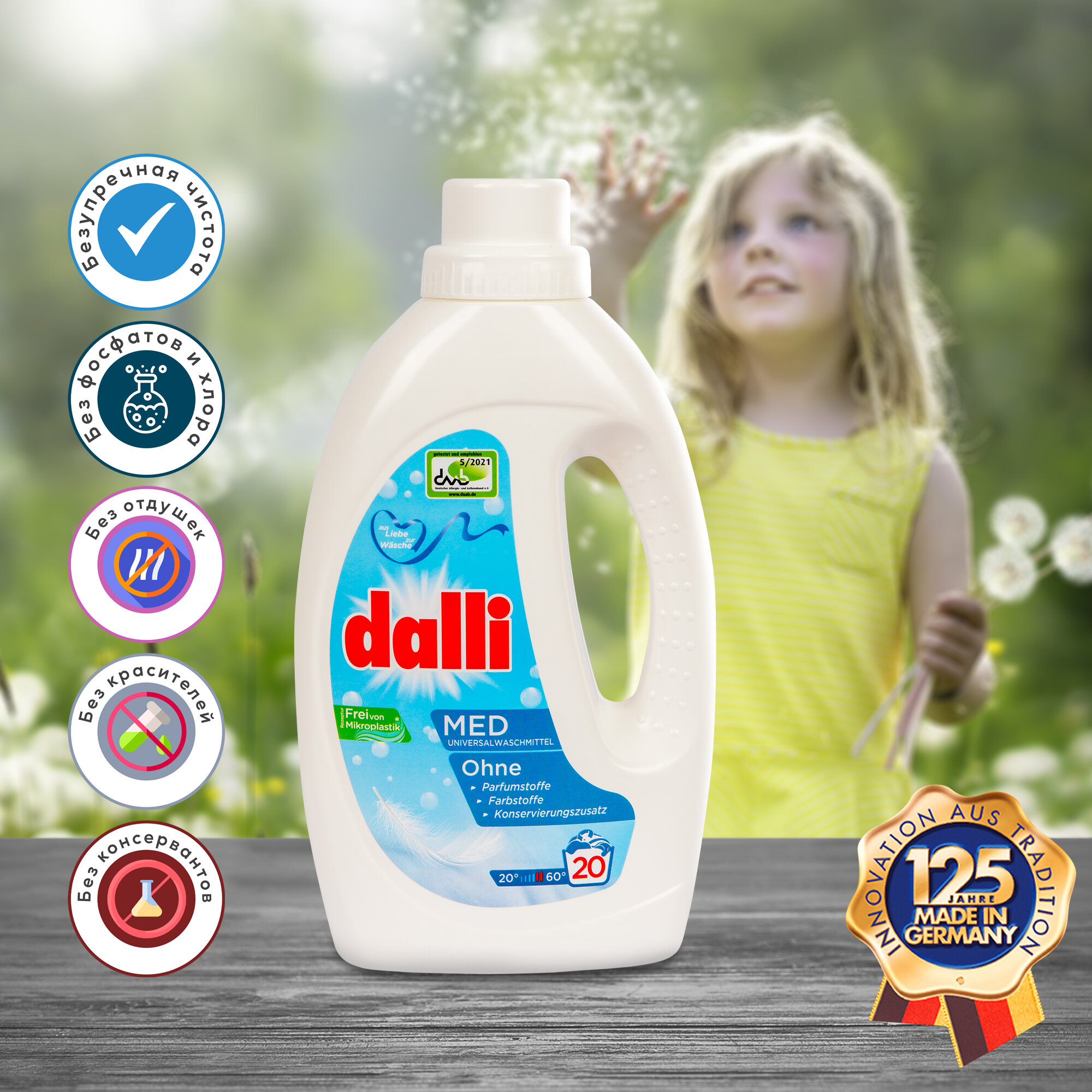 Гель для стирки Dalli Med, 1.1 л, 1.2 кг, бутылка интересное: