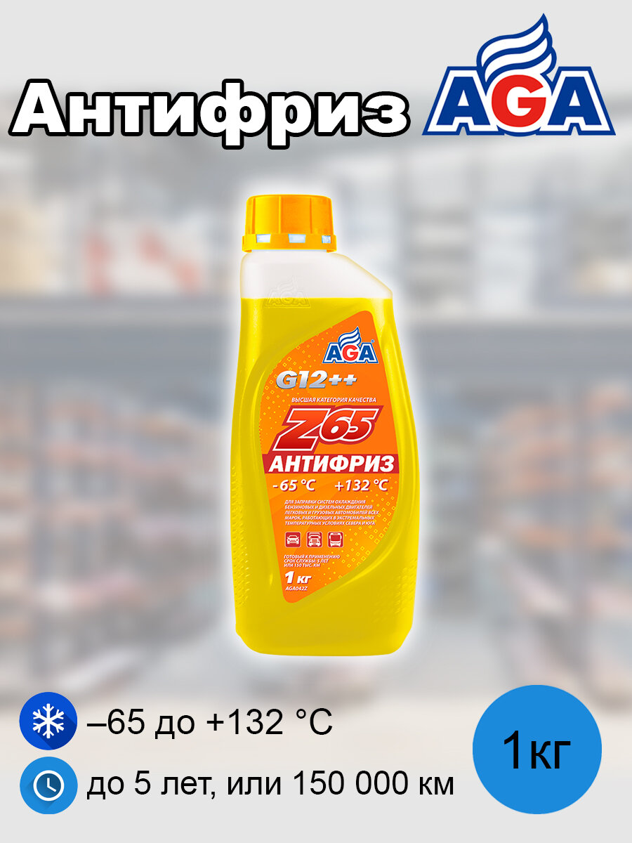 AGA AGA042Z Антифриз, готовый к применению, желтый, -65С, 1 кг, G-12++ AGA ANTIFREEZE AGA-Z65, PREMIX