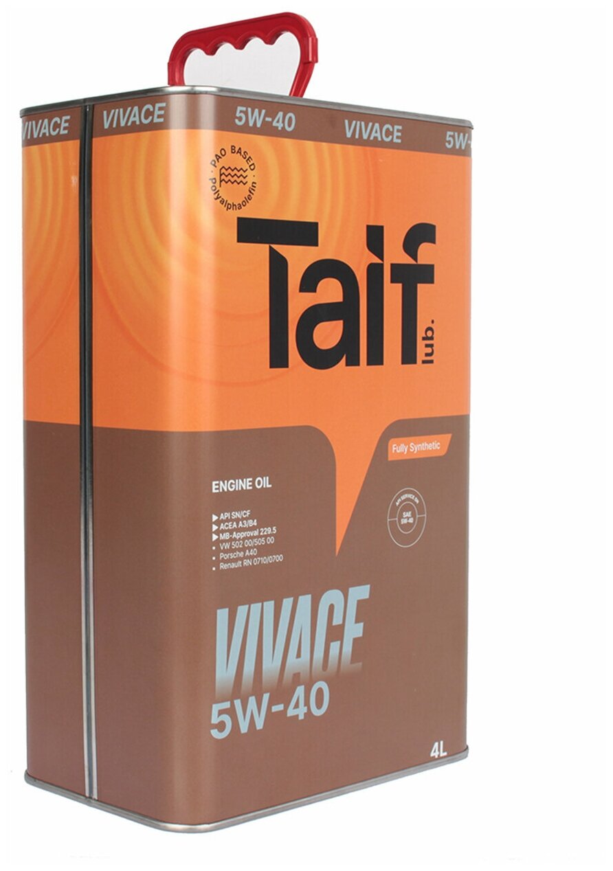 TAIF Lubricants Taif Масло Моторное Vivace 5w-40, 4l Api Sn/Cf, Mb- 229.5,Vw 502 00/505 00
