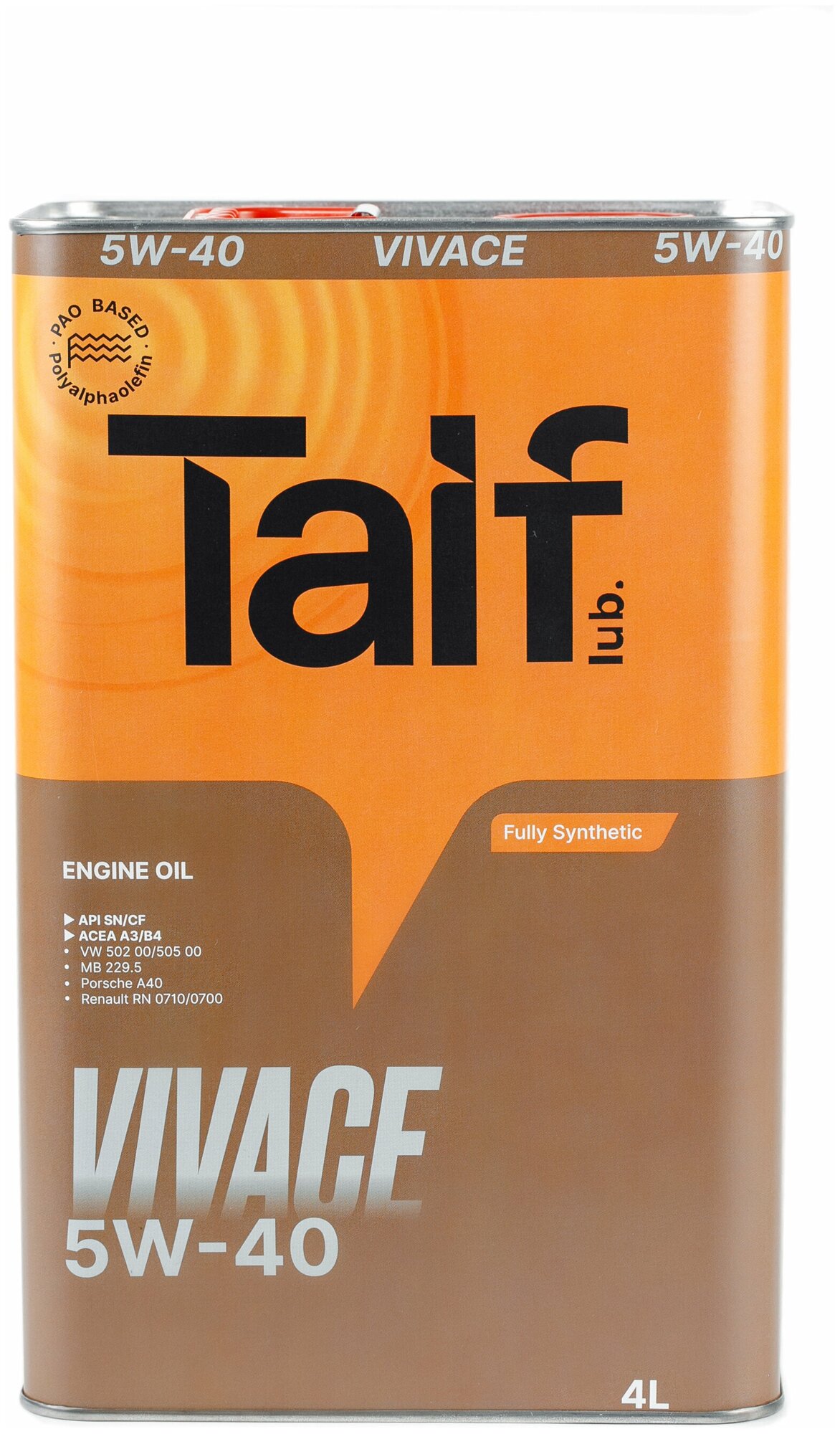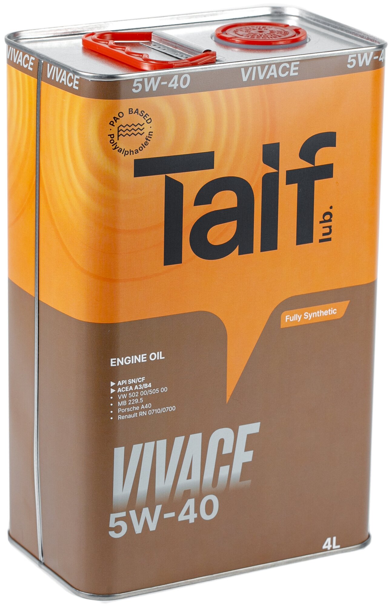 Синтетическое моторное масло TAIF VIVACE SN/CF 5W-40, 4 л, 3.8 кг, 1 шт