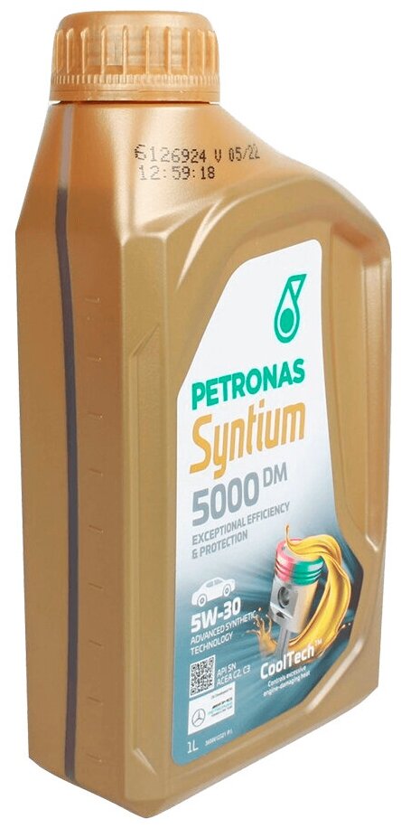 Моторное масло PETRONAS SYNTIUM 5000 DM 5W-30 Синтетическое 5л MB-Approval 229.51, MB-Approval 229.52, VW 505.00 / 505.01, BMW Longlife-04, API SN, ACEA C2 C3, 70644M12EU