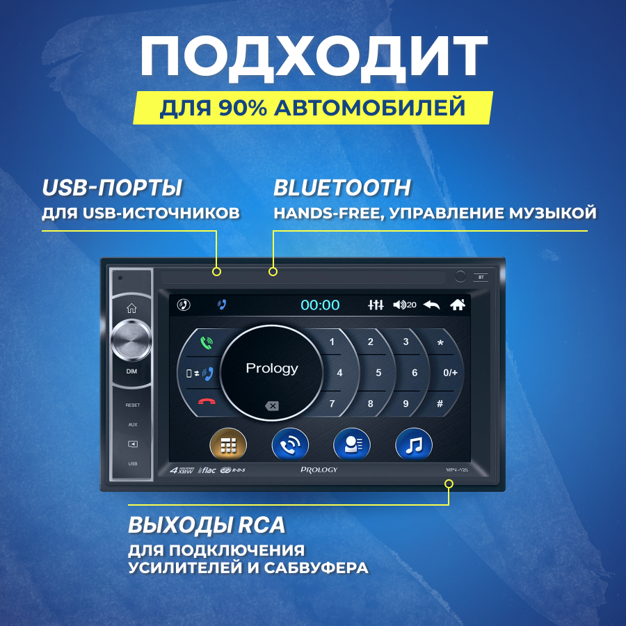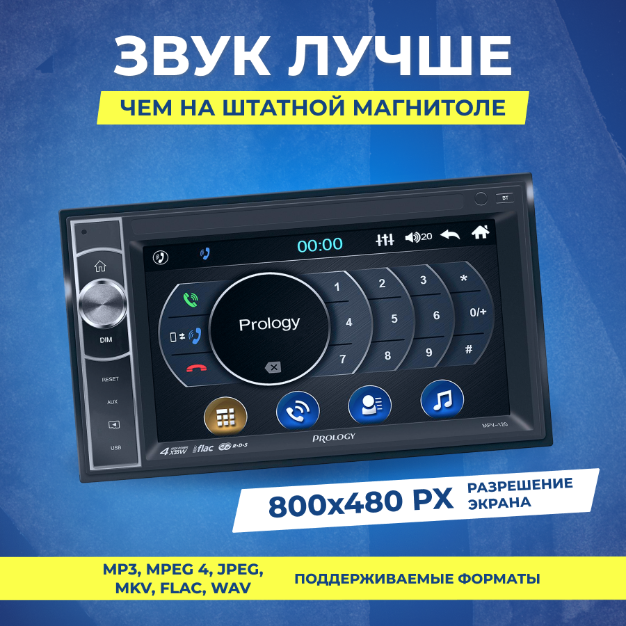 Мультимедийный центр для автомобиля PROLOGY PRMPV120 2 DIN,с BT/USB/microSD для MP3/WMA/WAV/FLAC