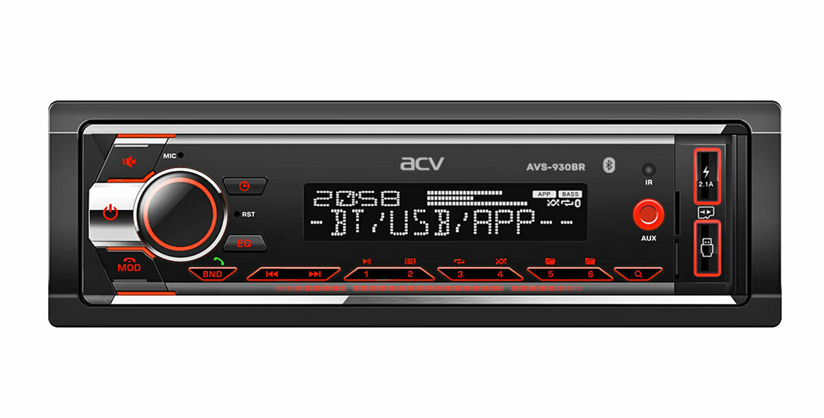 Автомобильный ресивер с BLUETOOTH, USB, красной подсветкой ACV AVS-930BR