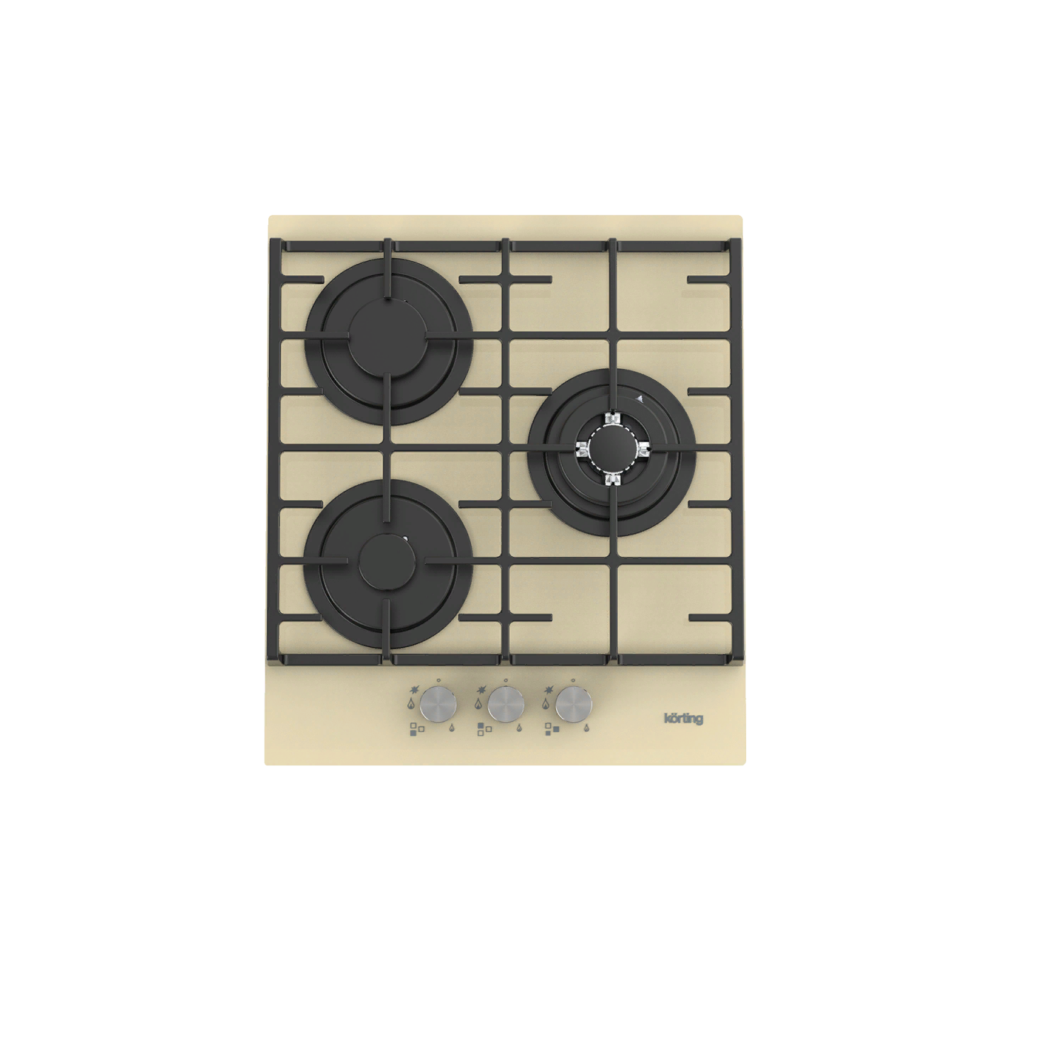 Газовая варочная панель Korting HGG 4825 CTB, бежевая, стеклянная поверхность, компактная, газ-контроль, электроподжиг, чугунные держатели для посуды, WOK-конфорка, металлические поворотные регуляторы