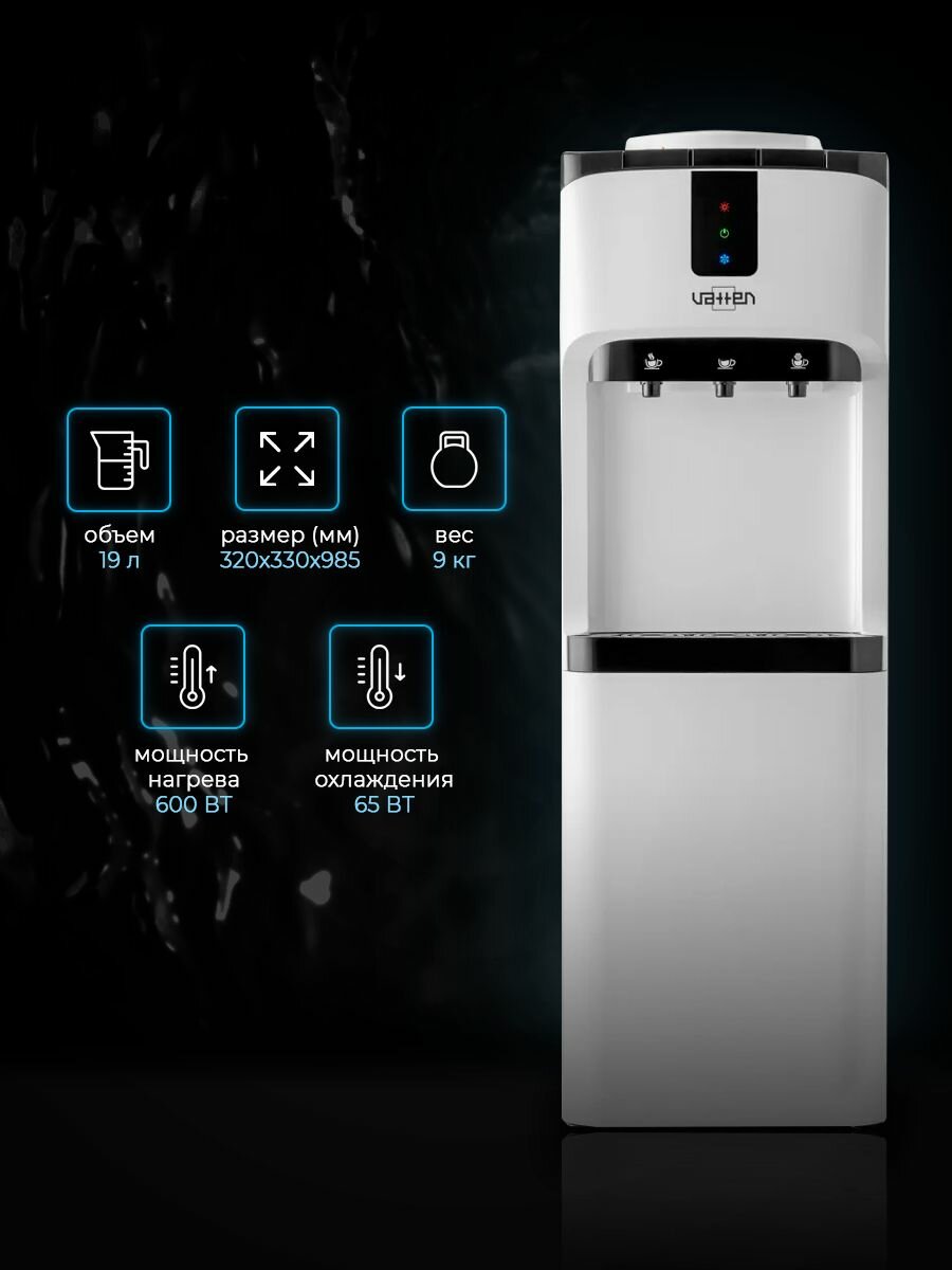 Кулер Vatten V02WE напольный электронный белый/черный (ут-00000603)